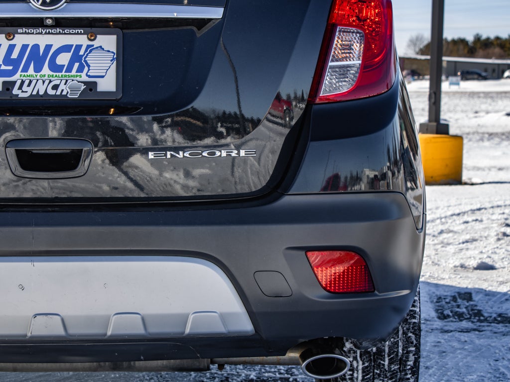 Keep your hands warm all winter with a heated steering wheel in this Buick Encore . Never get into a cold vehicle again with the remote start feature on this mid-size suv. The Buick Encore offers Automatic Climate Control for personalized comfort. Protect this model from unwanted accidents with a cutting edge backup camera system. The leather seats in it are a must for buyers looking for comfort, durability, and style. Bluetooth® technology is built into it, keeping your hands on the steering wheel and your focus on the road. This mid-size suv is outfitted with an OnStar communication system. Maintaining a stable interior temperature in this Buick Encore is easy with the climate control system. This mid-size suv has a 4 Cyl, 1.4L high output engine. Front wheel drive on this Buick Encore gives you better traction and better fuel economy. The Buick Encore is painted with a sleek and sophisticated black color.