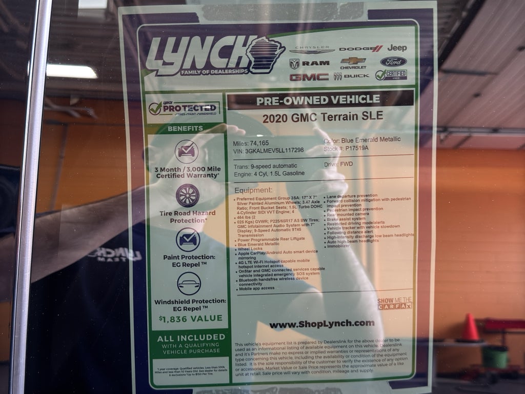 This unit offers Android Auto for seamless smartphone integration. Apple CarPlay: Seamless smartphone integration for the vehicle - stay connected and entertained on the go! This vehicle keeps you comfortable with Auto Climate. This vehicle has an automatic transmission. See what's behind you with the back up camera on this unit. This GMC Terrain shines with an exquisite blue finish. This GMC Terrain has a clean CARFAX vehicle history report. Set the temperature exactly where you are most comfortable in this 2020 GMC Terrain . The fan speed and temperature will automatically adjust to maintain your preferred zone climate. This GMC Terrain features cruise control for long trips. The Electronic Stability Control will keep you on your intended path. The vehicle has a 4 Cyl, 1.5L high output engine. It is front wheel drive. This GMC Terrain is equipped with a gasoline engine. Bluetooth® technology is built into this 2020 GMC Terrain , keeping your hands on the steering wheel and your focus on the road. With the adjustable lumbar support in the GMC Terrain your back will love you. The spacious cabin accommodates your family and friends in comfort. Take it to the mountains or the beach. this 2020 GMC Terrain can handle it all. Keep safely connected while in this GMC Terrain with OnStar. You may enjoy services like Automatic Crash Response, Navigation, Roadside Assistance and Hands-Free Calling. Load groceries and much more with ease into this 2020 GMC Terrain thanks to the power liftgate. Start this GMC Terrain from inside with remote start.