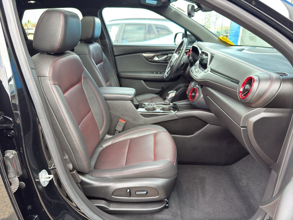 See what's behind you with the back up camera on this Chevrolet Blazer. The leather seats in the Chevrolet Blazer are a must for buyers looking for comfort, durability, and style. This unit offers Apple CarPlay for seamless connectivity. This model comes equipped with Android Auto for seamless smartphone integration on the road. Bluetooth® technology is built into the vehicle, keeping your hands on the steering wheel and your focus on the road. Start the Chevrolet Blazer from inside with remote start. It has a clean CARFAX vehicle history report. This vehicle is a certified CARFAX 1-owner. Lane Keep Assist in this vehicle helps maintain safe driving by gently steering to stay within the lane. Keep your hands warm all winter with a heated steering wheel in the vehicle . The vehicle keeps you comfortable with Auto Climate.