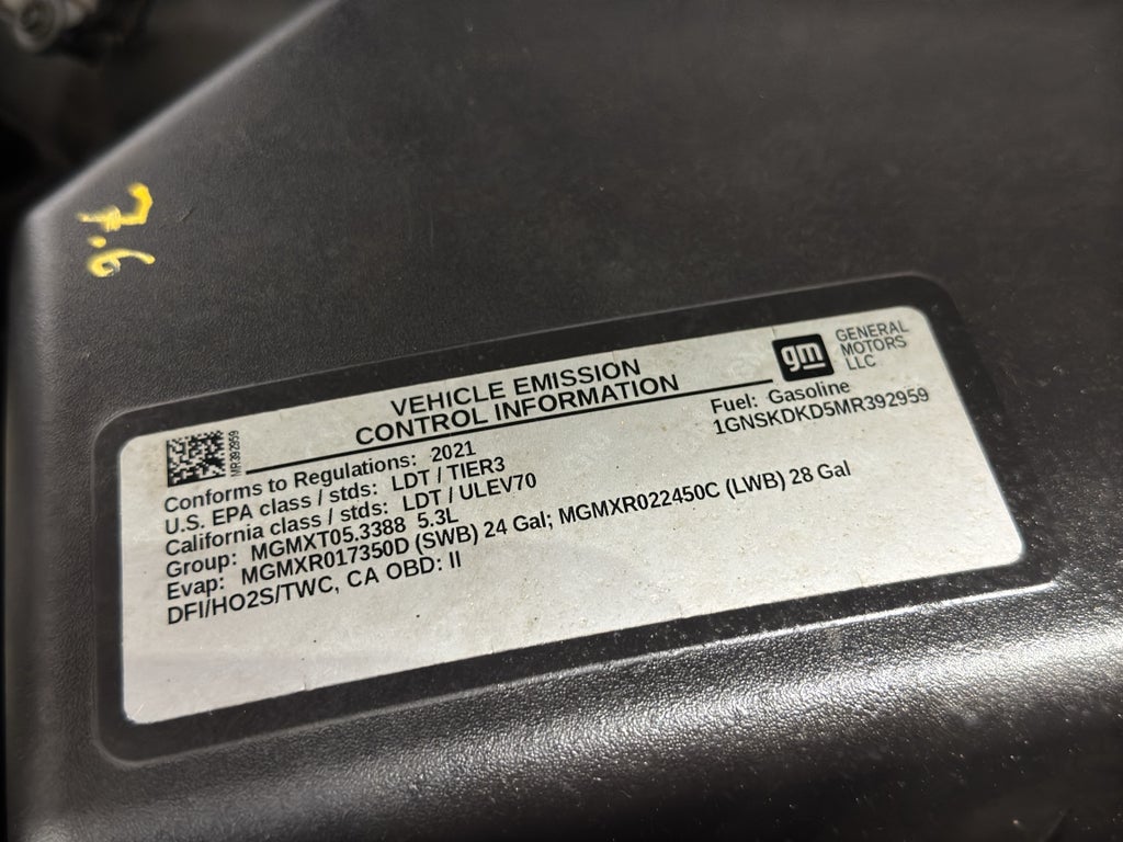 Preferred Equipment Group 2Z7: Bright Front and Rear Door Sill Plates; Leather Seating Surfaces; Remote Start; 3.23 Rear Axle Ratio; Hill Descent Control; 20" X 9" Machined Aluminum Wheels; 5.3L EcoTec3 V8 Engine; Floor Console with Storage Area; Black Tubular Assist Steps; LED Daytime Running Lamps; Driver and Front Outboard Passenger Airbags; 10-Way Power Driver and Passenger Seat Adjusters; Memory Settings For Driver; Heated Driver and Front Passenger Seats; Premium Smooth Ride Suspension; Front Bucket Seats; Electronic 10-Speed Automatic Transmission with Overdrive; Universal Home Remote; Colour-Keyed Carpeting Floor Covering; Front Skid Plate; Front High-Approach Angle Fascia; Hands-Free Rear Power Programmable Liftgate; Bose 9-Speaker Stereo Audio System Feature; 2-Speed Active Electronic Autotrac Transfer Case; 1st and 2nd Row Colour-Keye