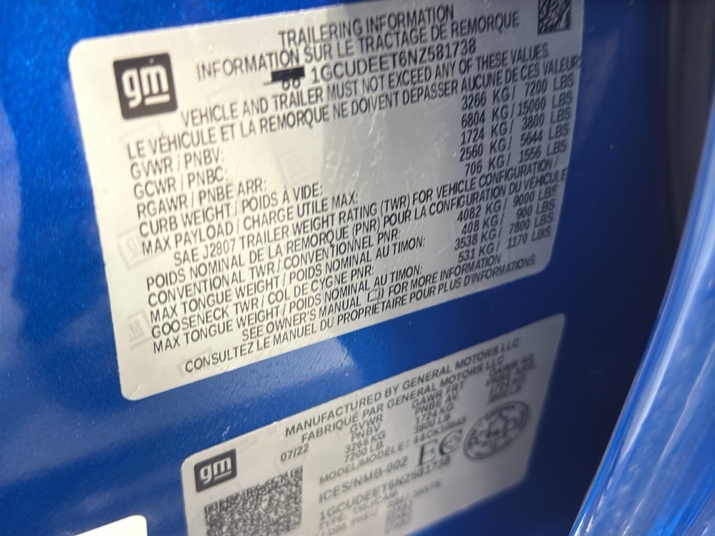 Keep your hands warm all winter with a heated steering wheel in this unit . The steering wheel audio controls on this 1/2 ton pickup keep the volume and station within easy reach. This vehicle offers Apple CarPlay for seamless connectivity. This Chevrolet Silverado stays safely in its lane with Lane Keep Assist. Never get into a cold vehicle again with the remote start feature on this 2022 Chevrolet Silverado 1500. Bluetooth® technology is built into this 2022 Chevrolet Silverado 1500, keeping your hands on the steering wheel and your focus on the road. This model's Lane Departure Warning keeps you safe by alerting you when you drift from your lane. This 2022 Chevrolet Silverado 1500 has auto-adjust speed for safe following. This model has a clean CARFAX vehicle history report. The vehicle warns of approaching vehicles with Cross-Traffic Alert. See what's behind you with the back up camera on this unit.