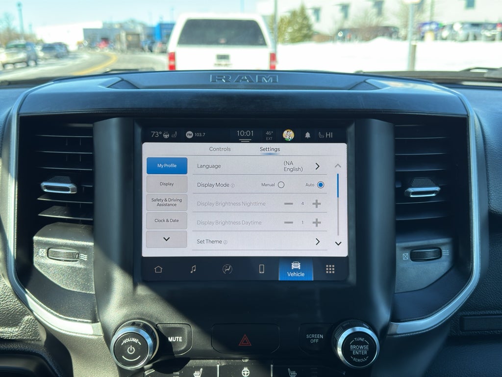 Quick Order Package 23Z Big Horn: Big Horn Badge. Big Horn Level 2 Equipment Group: Google Android Auto; SiriusXM Radio Service; Bluetooth® Handsfree Phone and Audio; USB Host Flip; Rear Window Defroster; Integrated Center Stack Radio; ParkSense Front/rear Park Assist with Stop; Rear View Auto Dim Mirror; Power Adjustable Pedals; For More Info. Call 800-643-2112; Rear Power Sliding Window; Rear Dome with On/off Switch Lamp; Glove Box Lamp; 115V Auxiliary Rear Power Outlet; GPS Antenna Input; Media Hub with 2 Charge Only USBs; Exterior Mirrors with Heating Element; Power 8-Way Driver Seat; Auto Dim Exterior Driver Mirror; Heated Front Seats; Uconnect 5 W Radio with 8.4" Display; Heated Steering Wheel; 8.4" Touchscreen Display; Black Exterior Mirrors; Class IV Receiver Hitch; Security Alarm; Black Premium Power Mirrors; Apple CarPlay; Big Horn Instrument Panel Badge; Remote Start System; SiriusXM Satellite Radio; Exterior Mirrors with Supplemental Signals; Exterior Mirrors Courtesy Lamps; Air Conditioning ATC with Dual Zone Control; 115V Auxiliary Power Outlet; Cluster 7.0" TFT Color Display; Universal Garage Door Opener; Power-Folding Mirrors; Convex Wide-Angle Mirror Insert; Sun Visors with Illuminated Vanity Mirrors; Power 2-Way Driver Lumbar Adjust. Night Edition: 275/55R20 OWL All Season Tires; Deluxe Cloth Bucket Seats; Accent Color Premium Power Mirrors; Black Headlamp Bezels; Black Exterior Truck Badging; Anti-Spin Differential Rear Axle; 20" X 9.0" Premium Paint/polished Wheels; Grille Surround 1 Black Texture 2 Black; Black Interior Accents; Dual Exhaust with Black Tips; Body Color Front Bumper; Body Color Rear Bumper with Step Pads; Black Painted Exterior Mirrors Caps. Deluxe Cloth Bucket Seats. Anti-Spin Differential Rear Axle. ParkSense Front/rear Park Assist with Stop. 115V Auxiliary Power Outlet. Granite Crystal Met CC. Remote Start System. MOPAR Front and Rear Rubber Floor Mats. Cluster 7.0" TFT Color Display. **Equipment listed is based on original vehicle build and subject to change. Please confirm the accuracy of the included equipment by calling the dealer prior to purchase.**