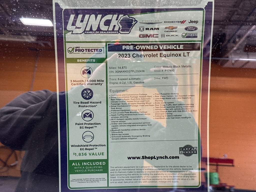 Ready to upgrade your drive? This 2023 Chevrolet Equinox LT in Burlington, WI delivers style, efficiency, and value — and it's priced to sell. With just 14,870 miles, this low-mileage SUV blends modern convenience with dependable performance from its 4-cylinder, 1.5L gasoline engine and smooth front-wheel drive. CARFAX shows a single owner and a clean report, giving you added confidence in your purchase.