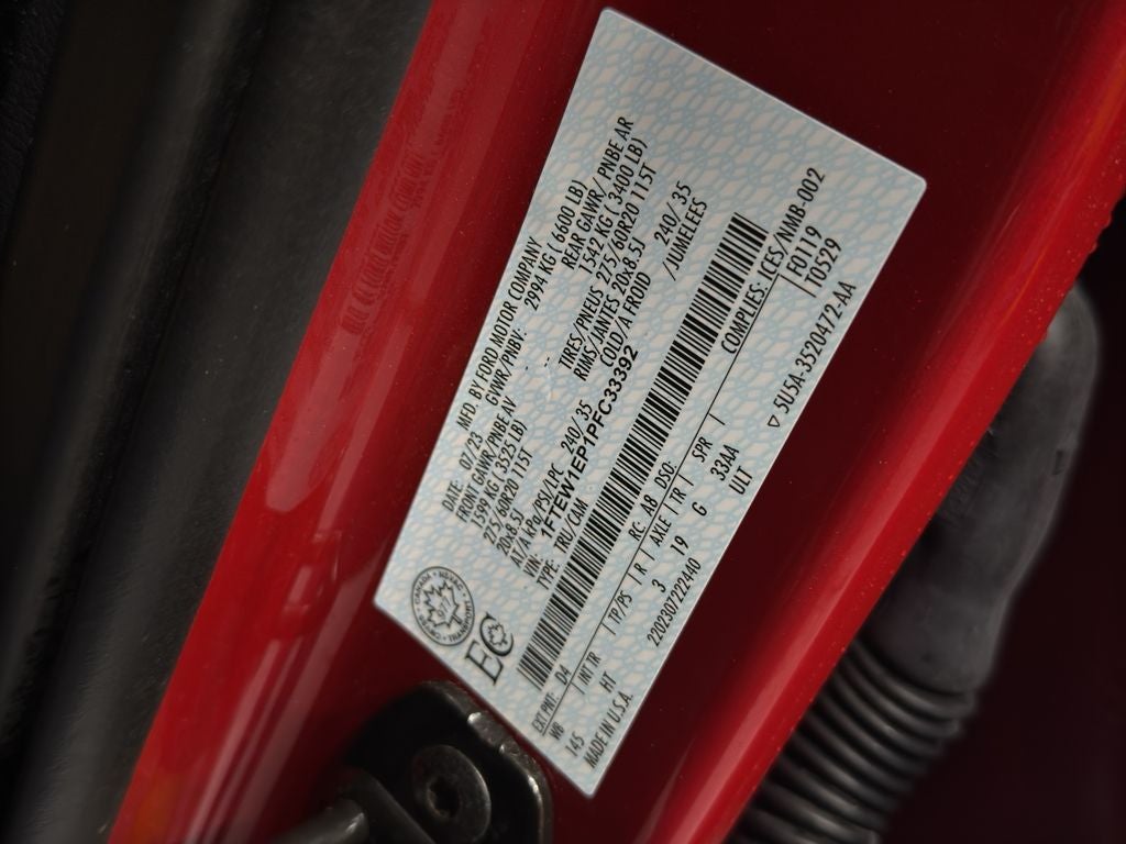Ford Co-Pilot360 Assist 2.0: Connected Built-In Navigation; Intersection Assist; Evasive Steering Assist; Intelligent Adaptive Cruise Control with Stop and Go. Equipment Group 502A High: 3.55 Axle Ratio; Electronic 10-Speed Automatic Transmission; Rain-Sensing Wipers; Leather-Trimmed Bucket Seats; Wireless Charging Pad; Power Tilt/telescoping Steering Column with Memory; 2. 994 Kg (6. 600 Lb) Payload Package GVWR; 20" Chrome-Like PVD Wheels; 2.7L V6 EcoBoost Engine; B&O Sound System by Bang and Olufsen; Heated Rear Seats; 275/60R20 BSW A/T Tires; LED Projector with Dynamic Bending Headlamps. Twin Panel Moonroof. 275/60R20 BSW A/T Tires. 360 Degree Camera. Rapid Red Metallic T