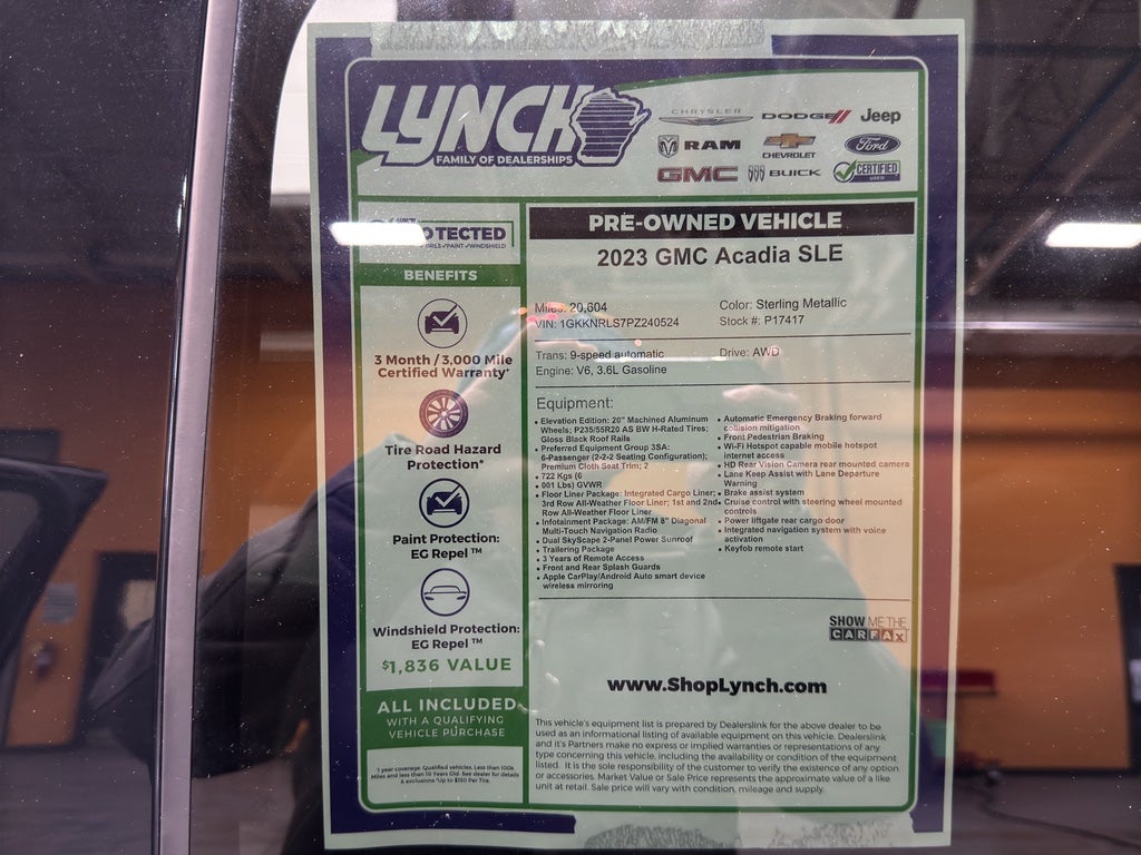 Ready to elevate your driving experience? This 2023 GMC Acadia SLE AWD with a robust V6 3.6L gasoline engine and only 20,604 miles delivers power, versatility, and comfort — all at the best price in Burlington, WI. Low mileage means more dependable driving and better long-term value, whether you commute, road-trip, or haul family and gear.