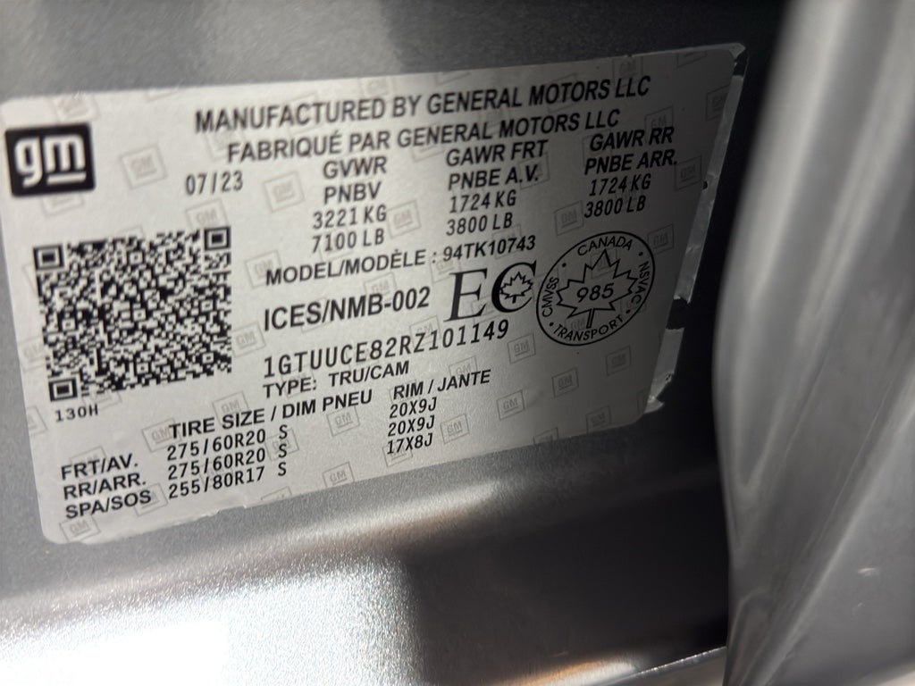 X31 Off-Road Package: 2-Speed Transfer Case; Hill Descent Control; Rear Wheelhouse Liners; Dual Exhaust System; Skid Plates; Heavy-Duty Air Filter; X31 Hard Badge. Preferred Equipment Group 3SB: Wheels: 20" X 9" High Gloss Black Painted Aluminum; HD Rear Vision Camera; LED Cargo Area Lighting; Cloth Seat Trim; Remote Vehicle Starter System; Electric Rear-Window Defogger; Theft Deterrent System (unauthorized Entry); Body Colour Header with Gloss Black Mesh Grille Bars; Cloth Rear Seat with Storage Package; GMC Pro Safety; High Capacity Suspension Package; Trailering Package; 120-Volt Interior Power Outlet; 2 Charge/data USB Ports; Steering Wheel Audio Controls; 2 Charge-Only Rear USB Ports; GMC Connected Access Capable; Colour-Keyed Carpeting Floor Covering; OnStar and GMC Connected Services Capable; Power Front Windows with Passenger