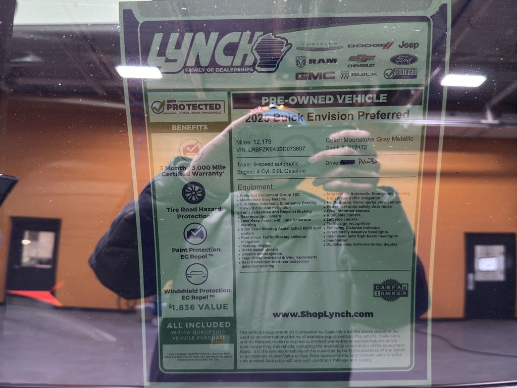 Enough room to carry all your cargo, passengers and equipment on a long road trip. Offering a ride height that is above most other vehicles, this 1/2 ton suv has great visibility on the road. This unit has auto-adjust speed for safe following. The high efficiency automatic transmission shifts smoothly and allows you to relax while driving. Engulf yourself with the crystal clear sound of a BOSE sound system in this Buick Envision. Protect this vehicle from unwanted accidents with a cutting edge backup camera system. Good News! This certified CARFAX 1-owner vehicle has only had one owner before you. This vehicle has a clean CARFAX vehicle history report. Easily set your speed in this vehicle with a state of the art cruise control system. Increase or decrease velocity with the touch of a button. The Electronic Stability Control will keep you on your intended path. It has a 4 Cyl, 2.0L high output engine. Front wheel drive on this unit gives you better traction and better fuel economy. It is equipped with a gasoline engine. The vehicle projects refinement with a racy metallic gray exterior. It features a hands-free Bluetooth® phone system. The Buick Envision's Lane Departure Warning keeps you safe by alerting you when you drift from your lane. It stays safely in its lane with Lane Keep Assist. The leather seats in this vehicle are a must for buyers looking for comfort, durability, and style. With the adjustable lumbar support in it your back will love you. You'll never again be lost in a crowded city or a country region with the navigation system on the vehicle. Load groceries and much more with ease into the Buick Envision thanks to the power liftgate. Never get into a cold vehicle again with the remote start feature on this 2025 B