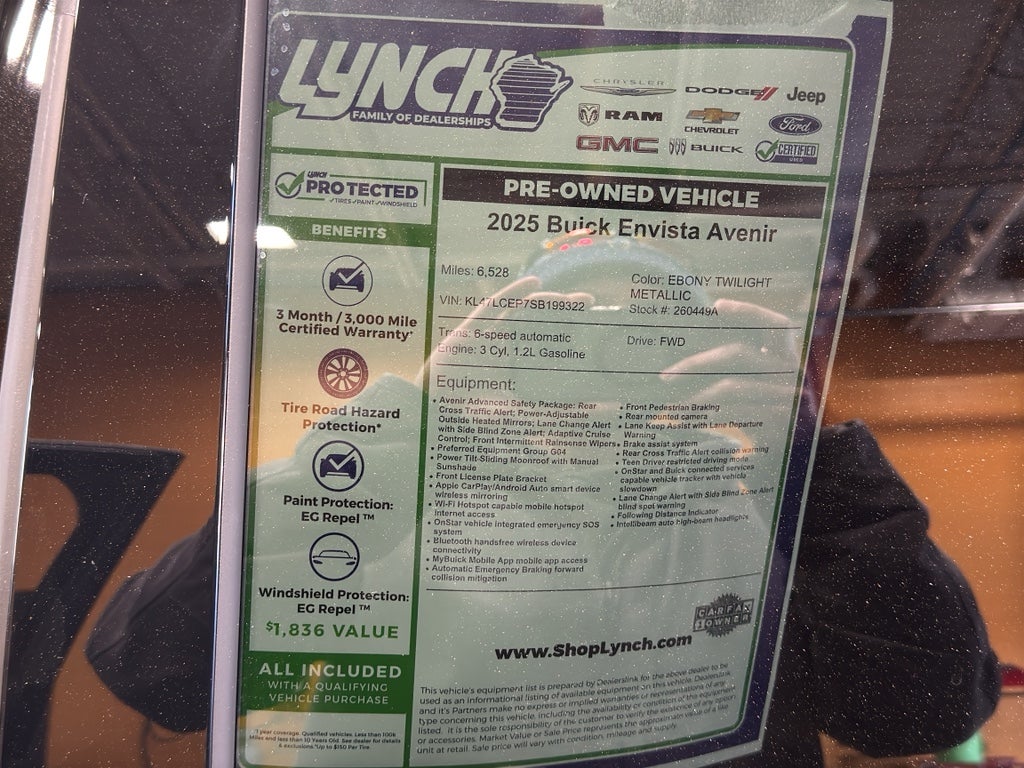 Located in Burlington, WI, this Buick Envista Avenir is competitively priced to sell quickly. If you want the best price on a low-mileage, feature-rich 2025 Buick Envista Avenir, arrange a test drive today and experience its refined comfort, connectivity, and safety features for yourself.
