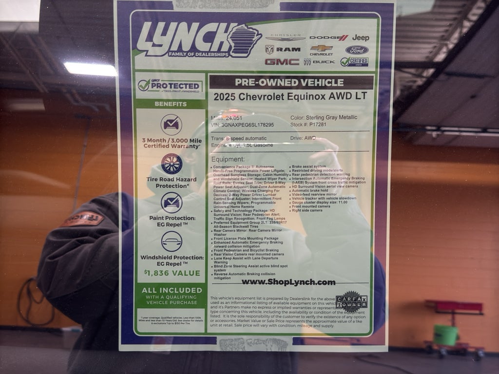 2025 Chevrolet Equinox AWD LT — low mileage and the best price in Burlington, WI. This sharp compact SUV pairs confident all-wheel-drive capability with an efficient 4-cylinder 1.5L gasoline engine, giving you reliable performance and excellent fuel economy for daily drives and weekend getaways. With just 24,051 miles, this Chevrolet Equinox delivers like-new value without the new-car price.