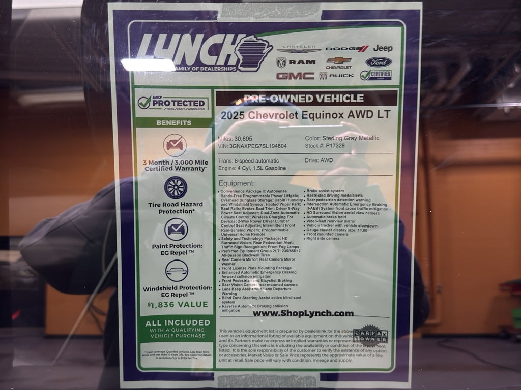 Located in Burlington, WI, this Chevrolet Equinox is competitively priced as the best deal available for similar models in the area. Whether you need a dependable daily driver or a capable SUV for weekend getaways, this 2025 Chevrolet Equinox AWD LT balances comfort, efficiency, and capability. Contact us to schedule a test drive or to request the CARFAX report and a detailed inspection summary. Don't miss the opportunity to own a low-mileage, feature-rich Chevrolet Equinox at the best price in Burlington.