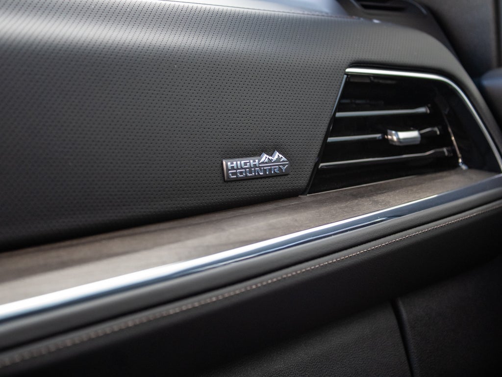 Advanced Trailering Package: Blind Zone Steering Assist with Trailering; Smart Trailer Integration Indicator; Hitch View with Pan/zoom Image Adjustment. Technology & Entertainment Package: Rear Seat Media System. Max Trailering Package: 2-Speed Active Electronic Autotrac Transfer Case; Hill Descent Control; Extra Capacity Cooling System; Integrated Trailer Brake Controller. Advanced Security Package: Self-Powered Horn Theft-Deterrent Alarm System; Vehicle Interior Movement Sensor; Vehicle Inclination Sensor; Glass Breakage Sensor. Technology Package: AutoSense Hands-Free Power Liftgate. High Country Deluxe: Dual-Pane Power Panoramic Sunroof; Air Ride Adaptive Suspension; Power-Retractable Assist Steps. Preferred Equipment Group 3LZ: 4-Way Power Front Passenger Lumbar Seat Adjuster; Bright Front and Rear Door Sill Plates; Memory Settings; 3rd Row 60/40 Power-Folding Split-Bench; Rear Power Liftgate; Chrome Door Handles with Body-Color Strip; LED Tail Lamps; 6.2L EcoTec3 V8 Engine; Inside Rearview Auo-Dimming Rear Camera Mirror; Front LED Fog Lamps; Heated Steering Wheel; Heated Driver and Front Passenger Seats; Universal Home Remote; Heated 2nd Row Outboard Seats; Power-Sliding Center Floor Console; Dual Exhaust System; Perforated Heated and Ventilated Seats; Power Tilt and Telescopic Steering Column; LED Headlamps with LED Daytime Running Lamps; 15" Diagonal Multi-Color Head-Up Display; Wireless Phone Charging; 8-Way Power Front Passenger Seat Adjuster; Bose 10-Speaker Surround with CenterPoint; 4-Way Power Driver Lumbar Seat Adjuster; Magnetic Ride Control Suspension; Power Release 2nd Row Bucket Seats; 275/50R22SL AS BW Tires; Heated Power-Adjustable Outside Mirrors. Enhanced Trailer View: Trailer Camera Provisions; Trailering Assist Guidelines. 22" Multi-Spoke Gloss Black Wheels. **Equipment listed is based on original vehicle build and subject to change. Please confirm the accuracy of the included equipment by calling the dealer prior to purchase.**