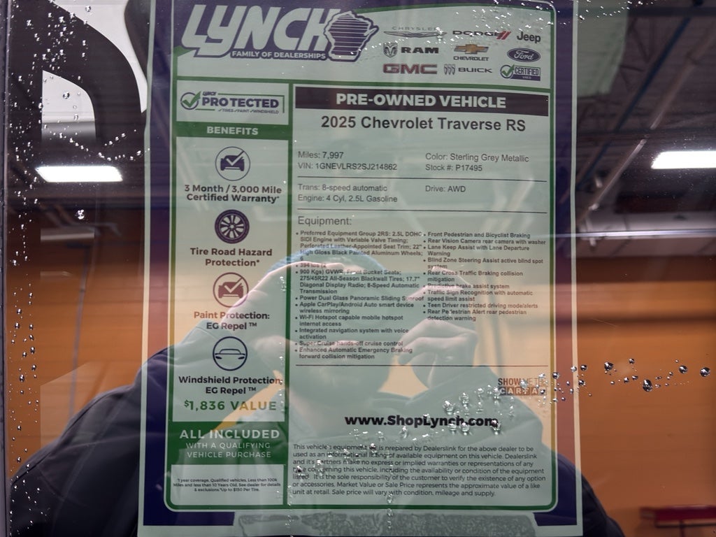 This vehicle represents the best price in the area for a 2025 model with such low mileage and premium features. Whether you're commuting, road-tripping, or transporting family and gear, this Chevrolet Traverse offers versatility, modern safety tech, and refined comfort. Located in Burlington, WI, it's ready for a test drive today. Competitive pricing and exceptional condition make this an outstanding value—schedule a viewing or call now to secure this low-mileage 2025 Chevrolet Traverse RS AWD before it's gone.