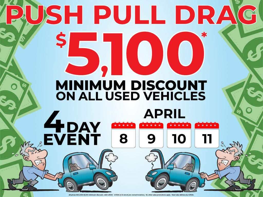 *** All prices INCLUDE $5,100 minimum discount, valid 4/8/2026 – 4/11/2026 on in-stock pre-owned inventory. No other sales promotions apply. Must take delivery by 4/11/2026 ***