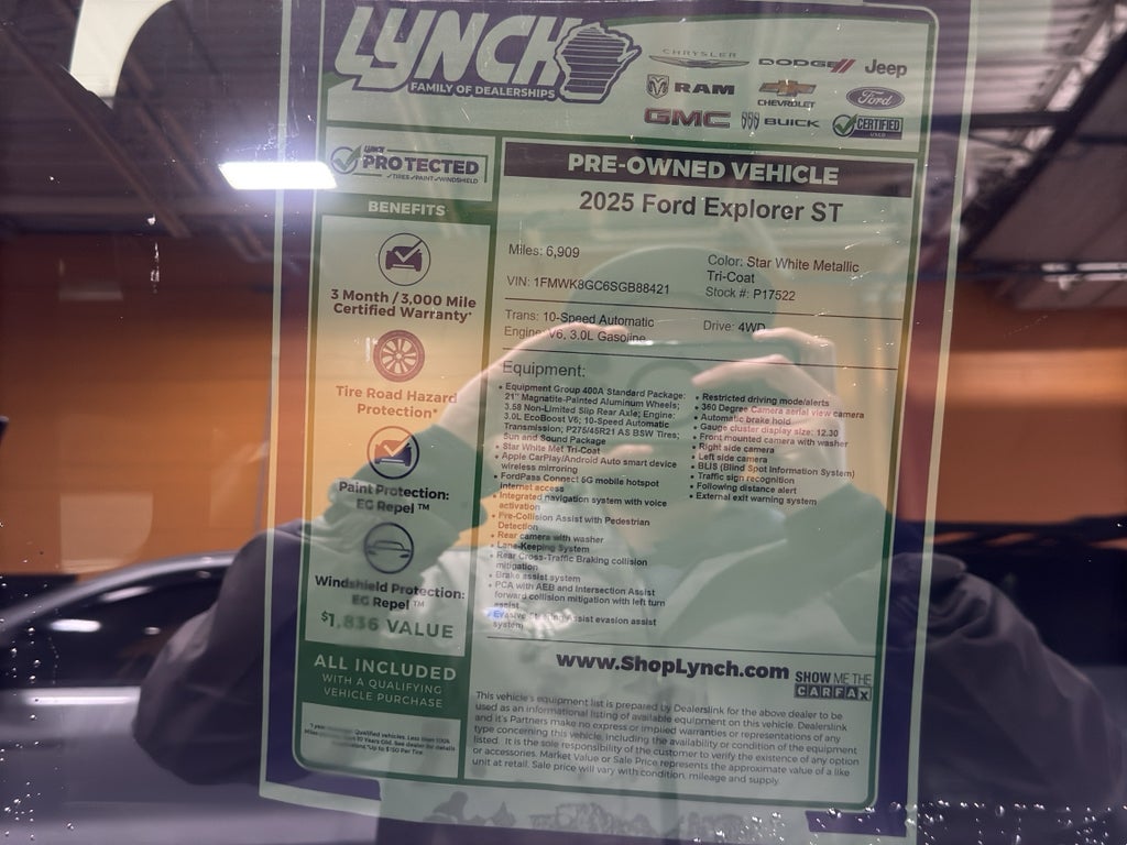 2025 Ford Explorer ST — low-mileage performance SUV with just 6,909 miles, located in Burlington, WI. This powerful 4WD Ford Explorer ST pairs a twin-turbo V6 3.0L gasoline engine with athletic handling and confidence-in-any-weather capability. Ideal for families and enthusiasts who want spirited acceleration plus capable towing and traction when roads turn challenging.