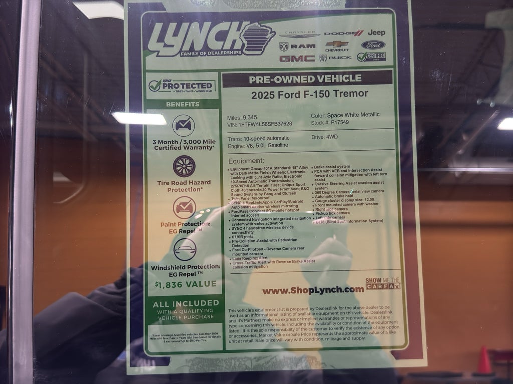 Priced to move and listed as the best price in the local market, this Ford F-150 Tremor is an excellent value for buyers seeking a capable, low-mileage truck without sacrificing features. Located in Burlington, WI, the vehicle is ready for immediate delivery and test drives. Contact the dealership to schedule an appointment and experience the powerful performance, advanced tech, and trail-ready capability of this 2025 Ford F-150 Tremor.