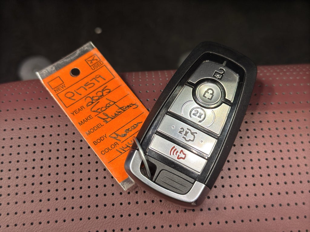 This small car has automated speed control that adjusts to maintain a safe following distance, enhancing highway driving convenience. This vehicle comes equipped with Android Auto for seamless smartphone integration on the road. This unit offers Apple CarPlay for seamless connectivity. This unit keeps you comfortable with Auto Climate. This unit has an automatic transmission. See what's behind you with the back up camera on it. Our dealership has already run the CARFAX report and it is clean. A clean CARFAX is a great asset for resale value in the future. Set the temperature exactly where you are most comfortable in this 2025 Ford Mustang . The fan speed and temperature will automatically adjust to maintain your preferred zone climate. The vehicle's Cross-Traffic Alert: Safeguarding you from unexpected traffic when reversing. The Ford Mustang features cruise control for long trips. Electronic Stability Control is one of many advanced safety features on this small car. This vehicle has a V8, 5.0L high output engine. Enjoy the tried and true gasoline engine in this 2025 Ford Mustang . This model features a hands-free Bluetooth® phone system. This 2025 Ford Mustang is pure luxury with a heated steering wheel. The leather seats in this model are a must for buyers looking for comfort, durability, and style. With the adjustable lumbar support in this Ford Mustang your back will love you. The installed navigation system will keep you on the right path. This Ford Mustang is rear wheel drive. This vehicle excites both driver and bystanders with a polished red exterior with racy lines. Start the