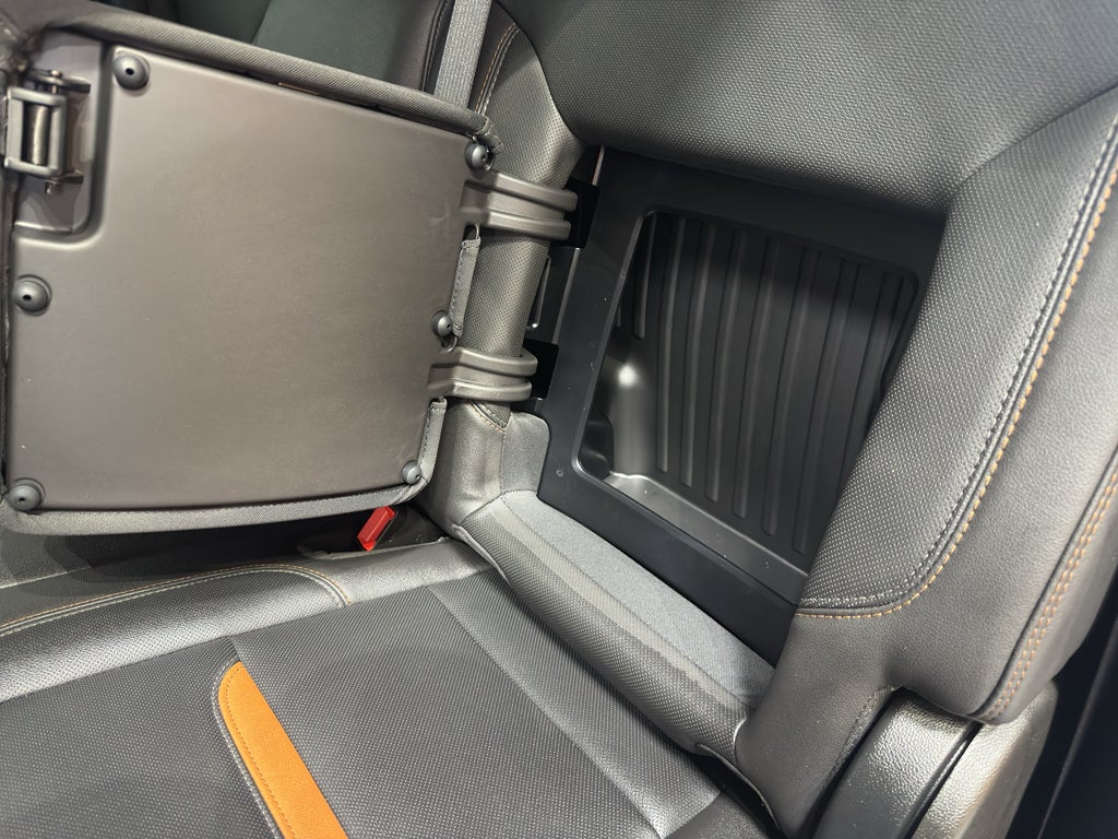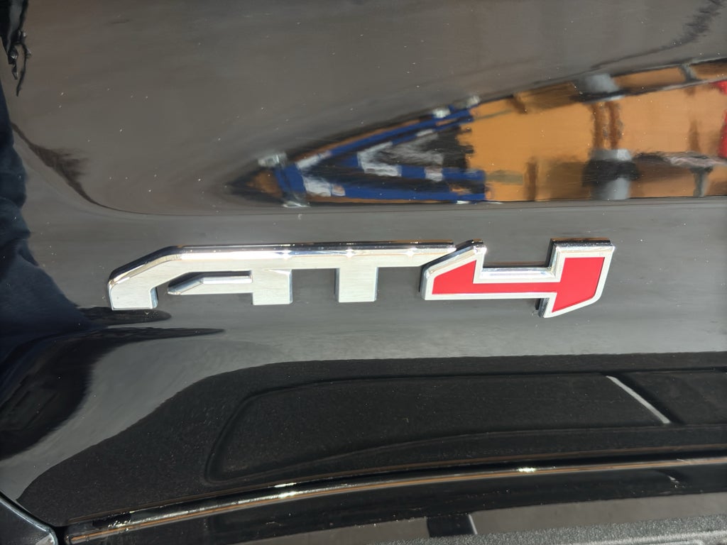 AT4 Premium Package. Preferred Equipment Group 4SB: Trailer Side Blind Zone Alert; Perforated Leather Front Seat Trim; 3.23 Rear Axle Ratio; Ultrasonic Front and Rear Park Assist; Trailer Camera Provisions; Electric Rear-Window Defogger; Theft Deterrent System (unauthorized Entry); Black Chrome Header and Grille Insert Bars; Front Rain-Sensing Wipers; Heavy-Duty Air Filter; Skid Plates; 120-Volt Interior Power Outlet; Wireless Charging; Front Bucket Seats; Front Premium Floor Liners with Removable Carpet Insert; 10-Speed Automatic Transmission; Colour-Keyed Carpeting Floor Covering; OnStar Services Capable; Heated 2nd Row Outboard Seats; Power Front Pass